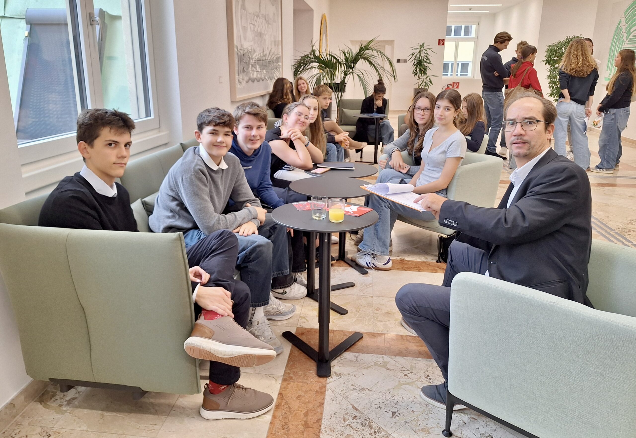 Schüler:innen der Maygasse (2SK, 3SK, 3JK) üben das konstruktive Debattieren. In den wunderschönen Räumlichkeiten des Bildungszentrums der AK Wien hören wir eine Impulsrede von Dr. Anja Appel von der Koordinierungsstelle der Bischofskonferenz zu den SDGs, lernen dann anhand einer Show-Debatte zum Thema Slum-Tourismus. Bis die Schüler:innen schließlich selbst debattieren dürfen.