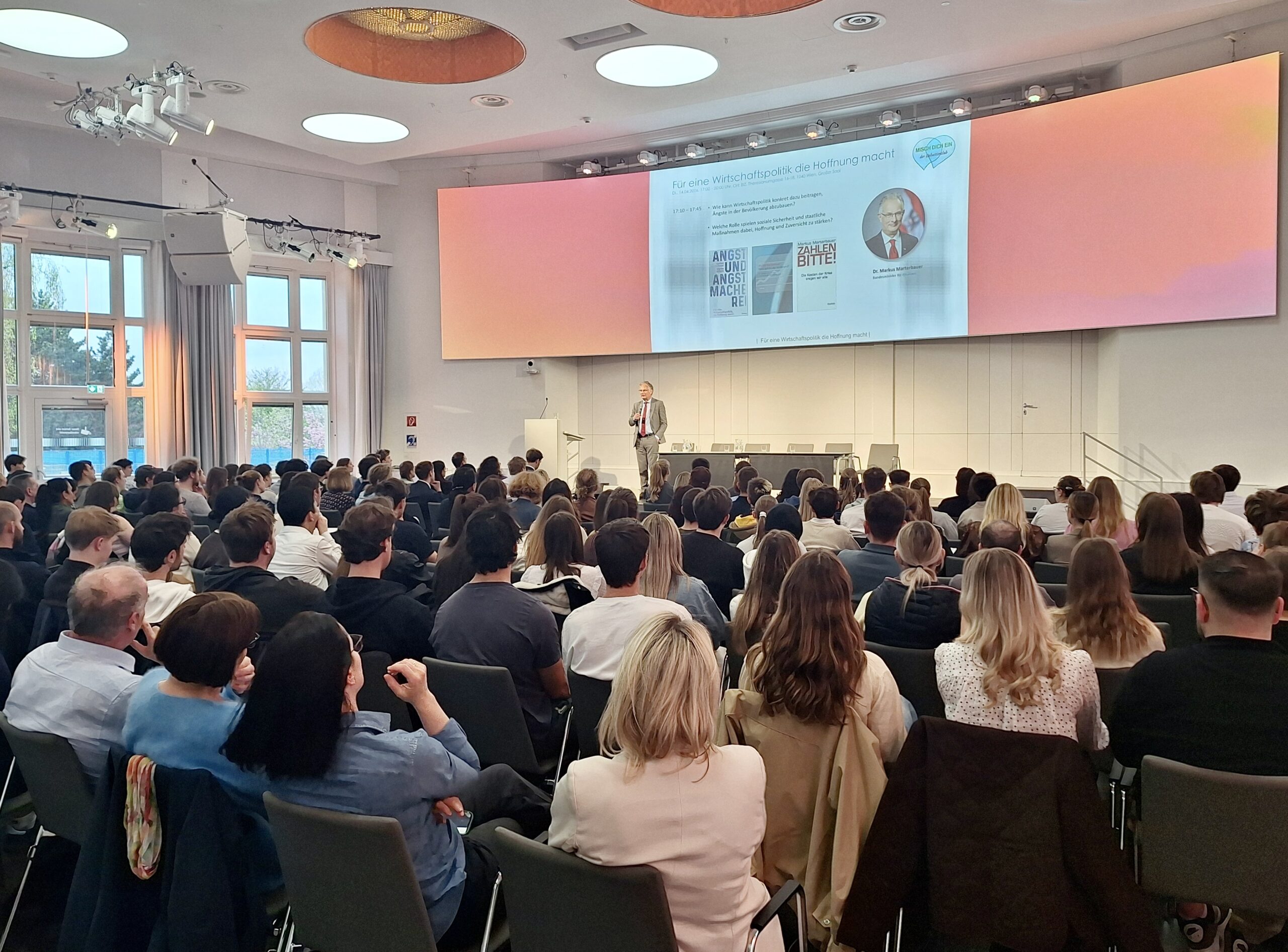 Nach den Gruß­wor­ten von Sek­ti­ons­che­fin Doris Wag­ner (BMB) und Mat­thi­as Schnet­zer (AK Wien) sprach Finanz­mi­nis­ter Mar­kus Mar­ter­bau­er über eine Wirt­schafts­po­li­tik, die Hoff­nung und Zuver­sicht gibt, wie wich­tig Sicher­heit und ech­te Teil­ha­be für gesell­schaft­li­chen Zusam­men­halt sind. Im Zen­trum stan­den die aktu­el­le Bud­get­po­li­tik sowie die Ver­hand­lun­gen rund um das zwei­jäh­ri­ge Bud­get. Gera­de in poli­ti­schen Aus­hand­lungs­pro­zes­sen zeigt sich: Posi­tio­nen und Vor­schlä­ge müs­sen klar sein und Argu­men­te fak­ten­ba­siert, defac­to ein Debattierclub.