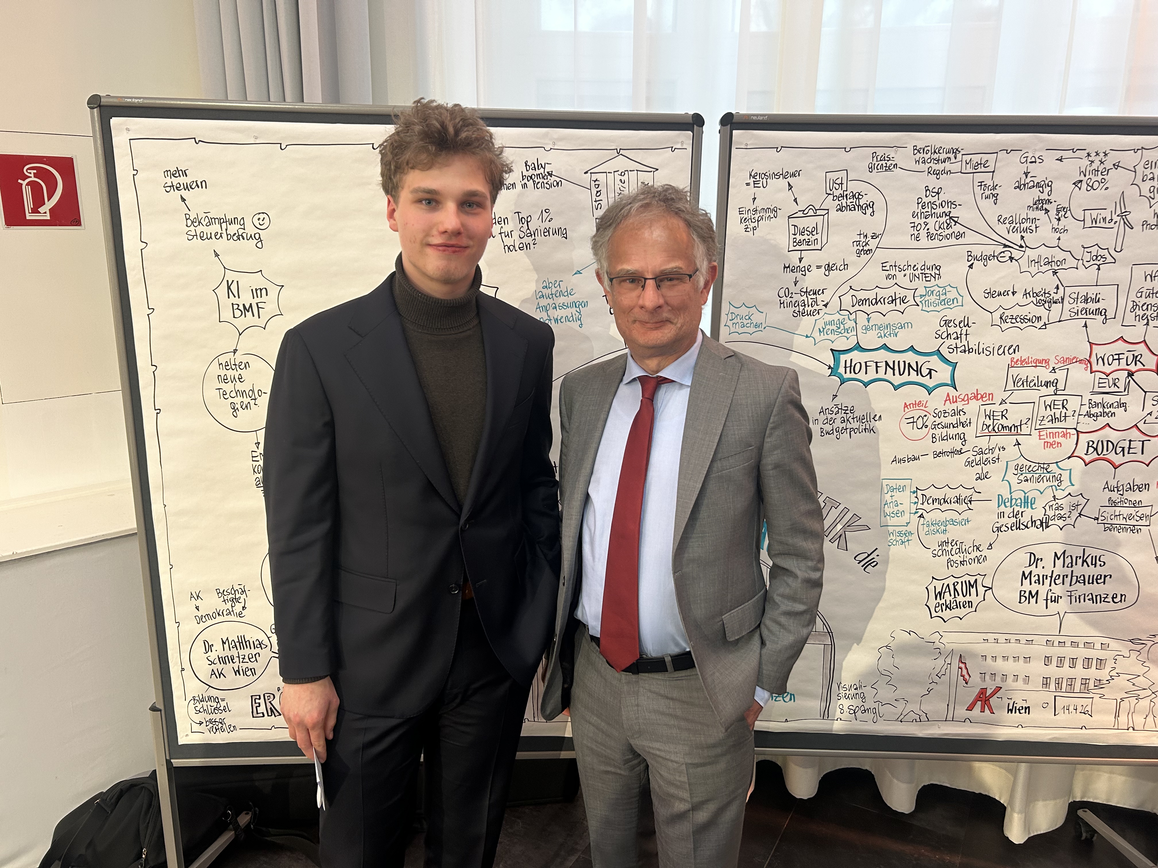 „Ideen für Euro­pa debat­tie­ren“ gemein­sam mit Finanz­mi­nis­ter Mar­kus Marterbauer.